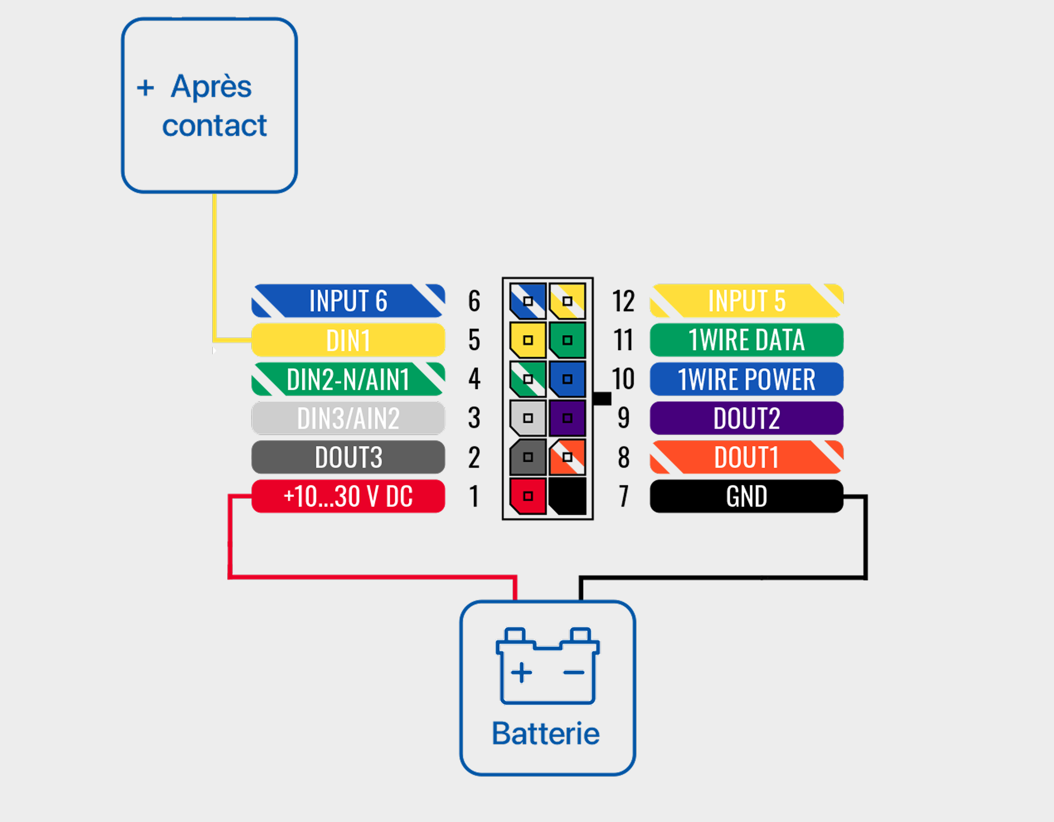 Ce raccordement permet au tracker d'autoriser ou d'interrompre le démarrage du véhicule à distance.
